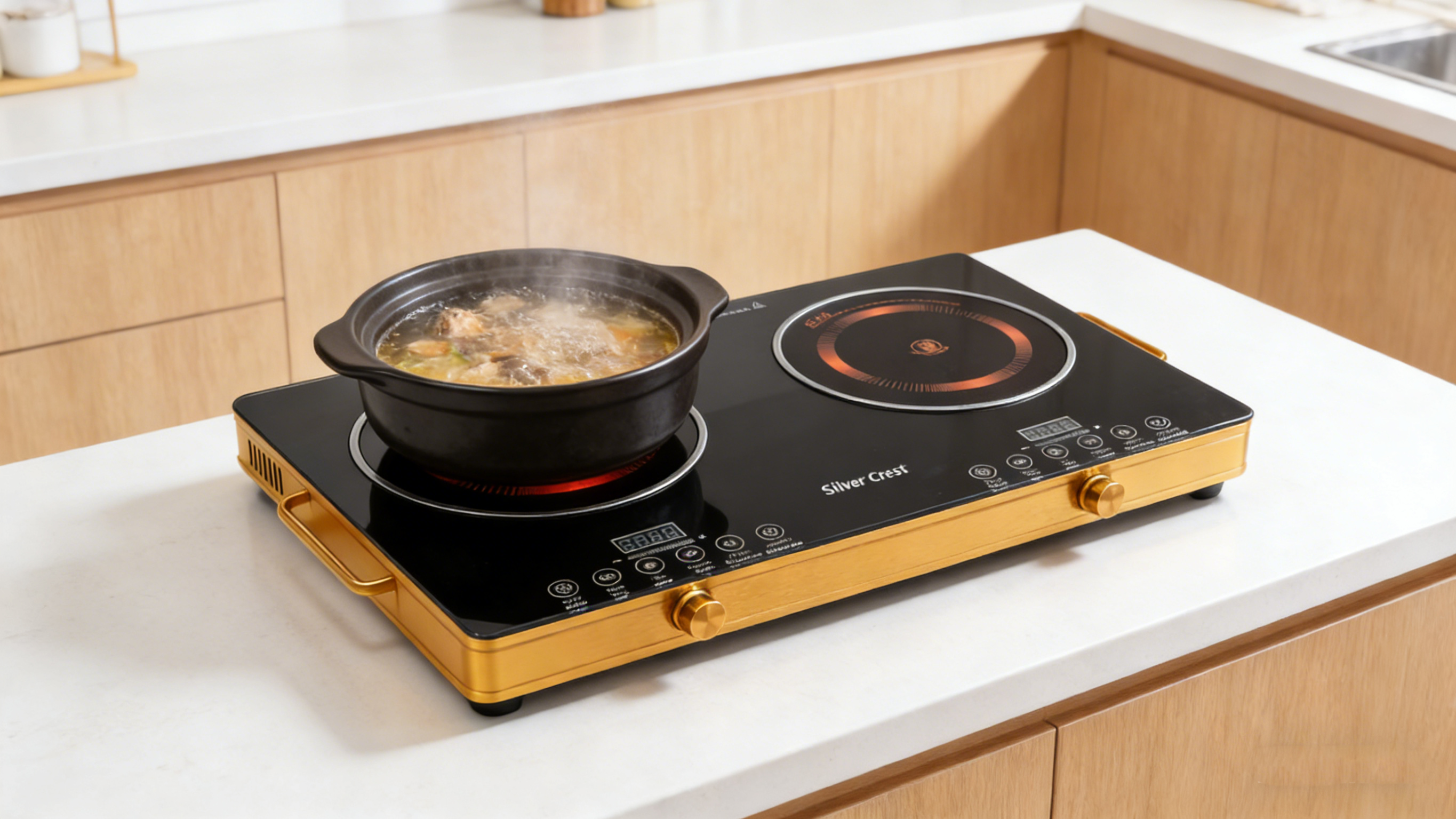 Powered by dual 900W infrared burners for a total of 1800W, delivering quick and consistent heat ideal for boiling, frying, or simmering.