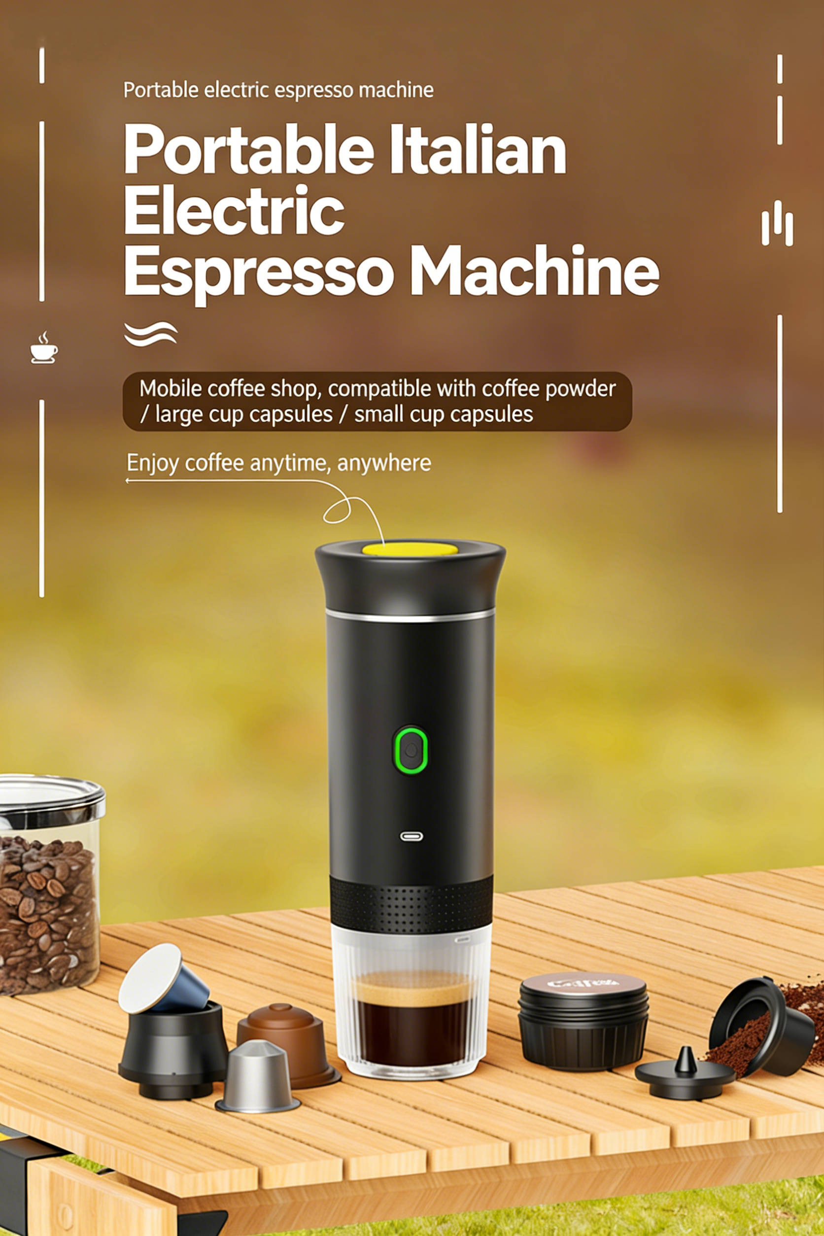 ✅ Cord-Free Battery Life: Built-in large-capacity battery with USB-C + car dual charging modes—brew 8–10 cups on a full charge for outdoor camping or road trips without needing an outlet. ✅ Compact Body, Minimal Space: Lightweight design (≈300g), similar in size to a bottled water. Easily fits into backpacks, office drawers, or car compartments—ideal for renters, shared workspaces, or travel. ✅ Seamless Multi-Scenario Adaptation: Office pick-me-ups, camping picnics, hotel stays, or family breakfasts—enjoy coffee anytime, anywhere, creating your own "mobile coffee corner."