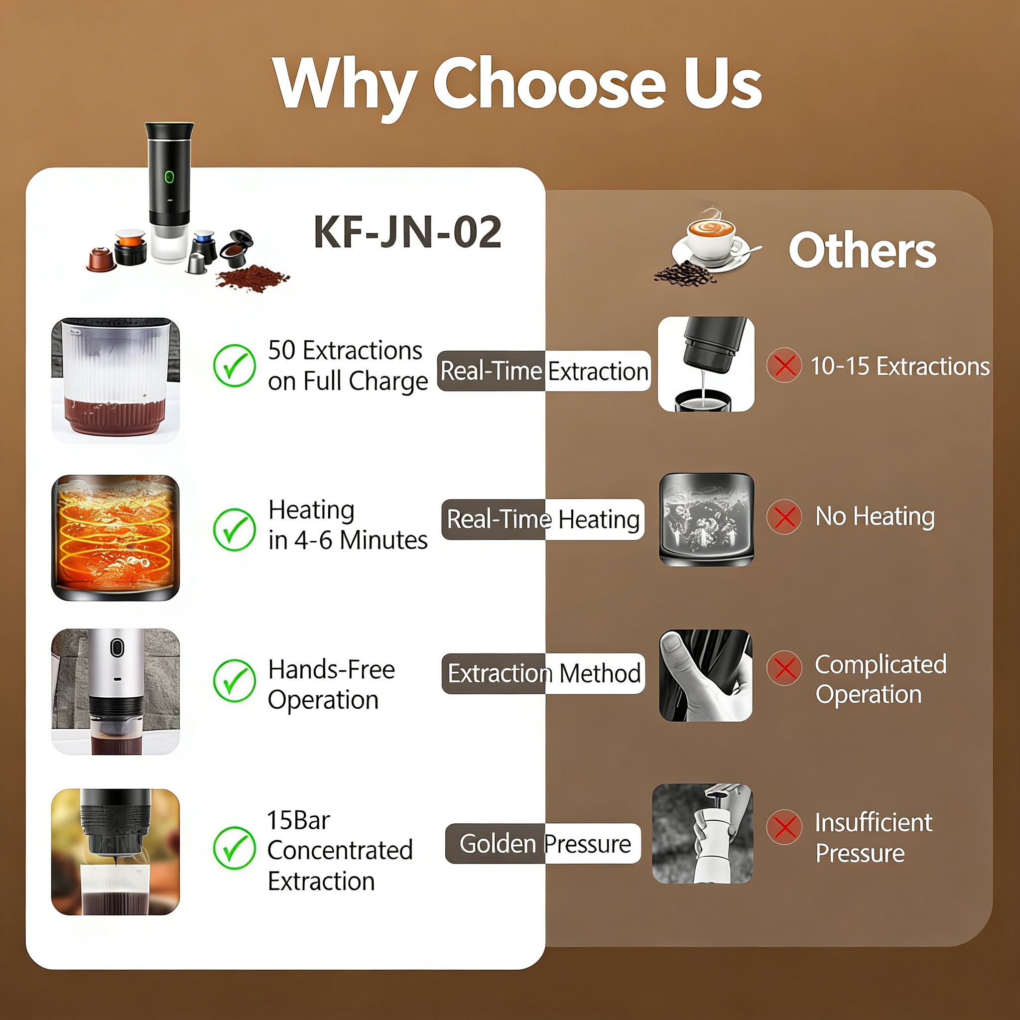 ✅ Dual Hot & Cold Brewing: Supports both hot extraction (quick heating from room-temperature water) and cold brew modes, allowing seamless switching between iced lattes in summer and hot espresso in winter—perfect for year-round use.