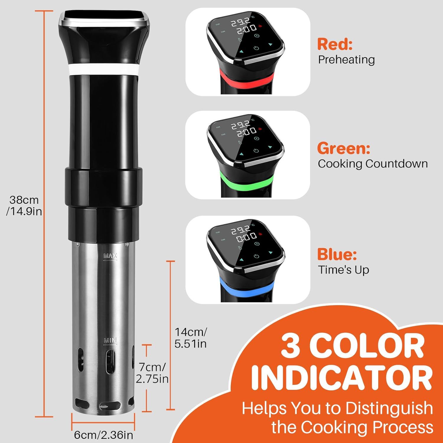 ±0.1℃ Precision Temperature Control: Equipped with a next-generation PID variable frequency temperature control chip and a high-precision temperature sensor, it monitors and adjusts the water temperature in real time, ensuring that the water temperature remains completely stable throughout the cooking process with an error of no more than 0.1°C.
